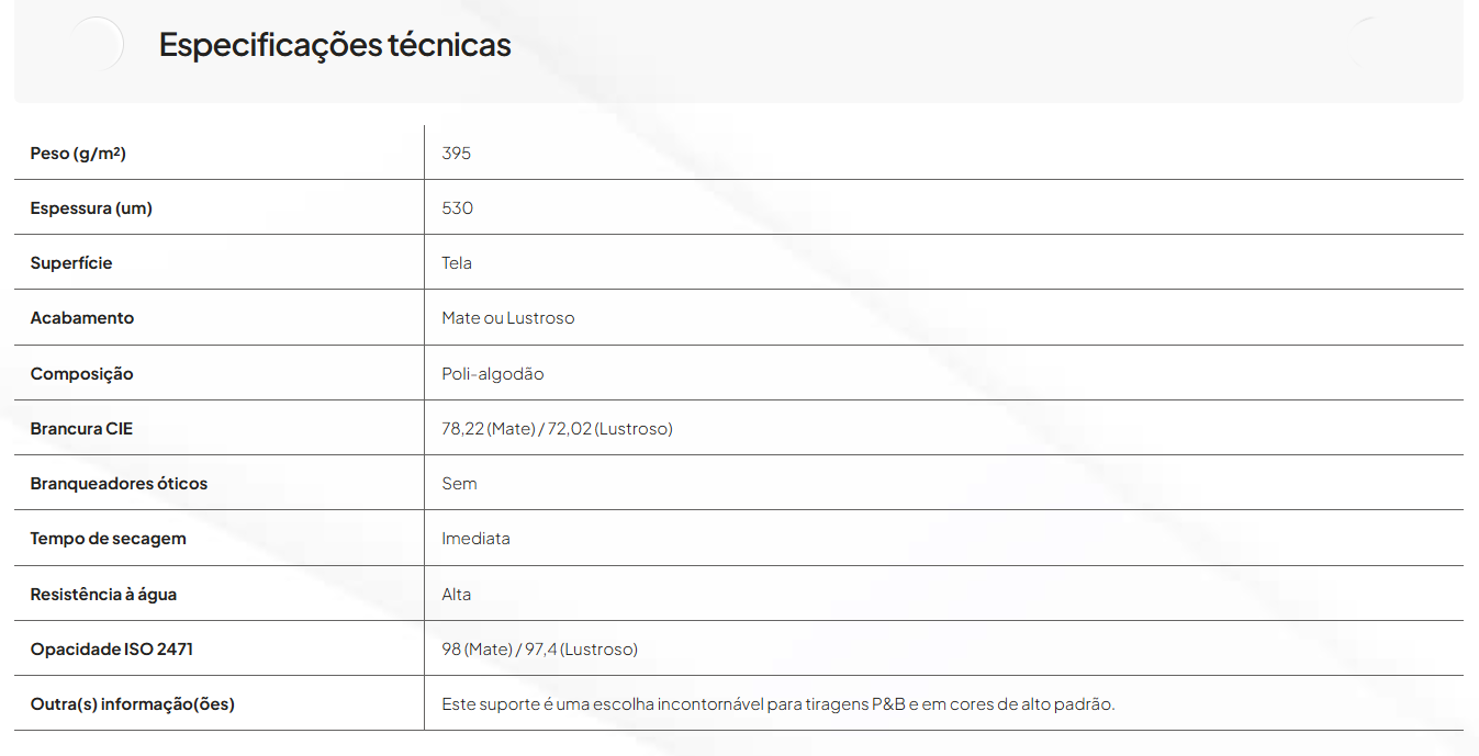 Graças à sua resistência à água, o PhotoArt ProCanvas é perfeito para aplicações exigentes, incluindo reproduções de arte, fotografia fine art e impressões profissionais de longa duração.
