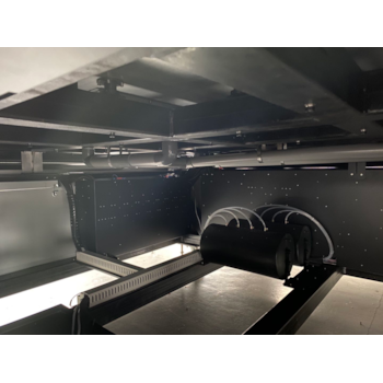 Com uma ampla área útil de 2500 x 1300 mm e capacidade de impressão até 100 mm de espessura, adapta-se facilmente a uma grande variedade de aplicações e materiais.